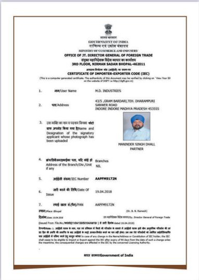 Certificate of Importer-Exporter Code (IEC)